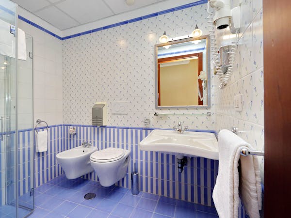 Quadruple bedroom, with a choice of a double and two single beds or four single beds. It includes soundproof windows, a/c and minibar.